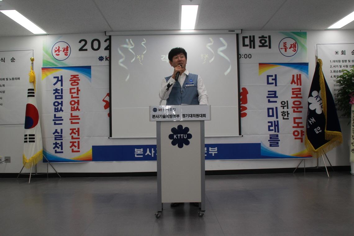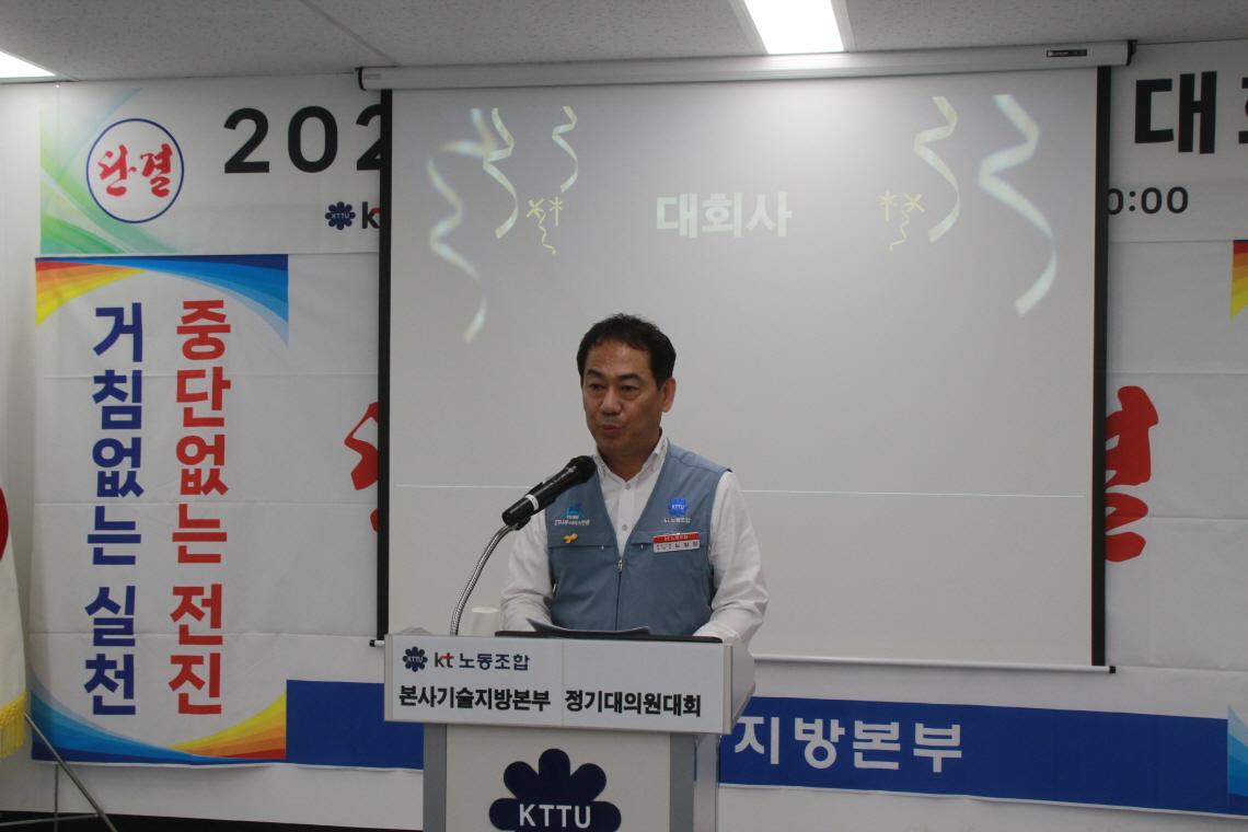 본사기술지방본부 노일철 위원장은 AI의 도래로 인해 급변하는 기로에 서 있는 작금의 시대에, 진정으로 조합원을 위해 일하는 노동조합의 역할을 다시한번 되새기며, 앞만보고 나아갈 것을 다시 한번 다짐하였다. 아울러, 15대 집행부 전원은 취임때의 초심을 절대로 잃지 않고 묵묵히 해야할 일을 한걸음 한걸음씩 완결해 나아갈 것을 힘주어 강조하며 대회사를 마무리 하였다.