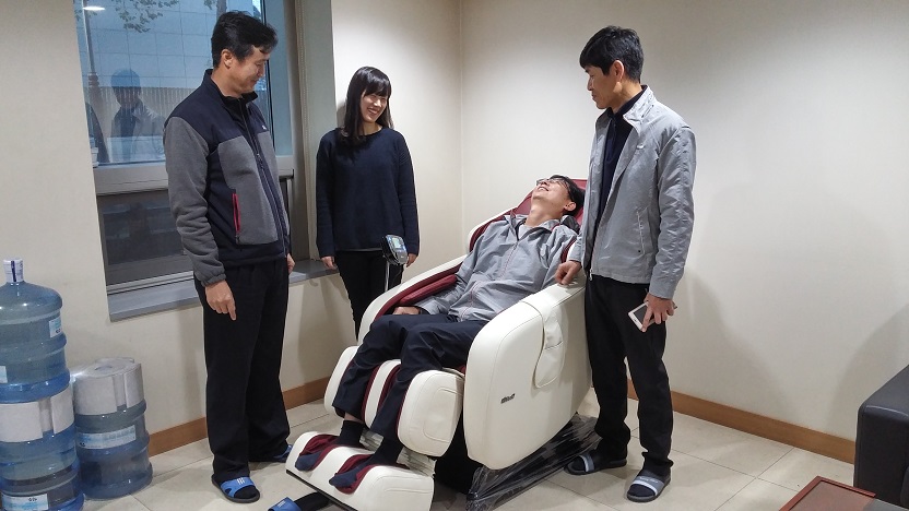 11.09 CEO 방문 격려로 조합원 야근 또는 근무중 피로회복을 위하여 1층 휴게실에 “안마용의자”를 구매 비치 함으로 활기찬 직장생활을 위한 복지공간 마련 하였습니다