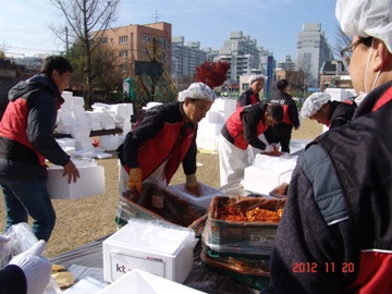 ㅇ일시 : 2012.11.20(화) 10시~14시ㅇ장소 : 대전기독교종합사회복지관ㅇ수량 : 2,000kg (절임배추+양념)ㅇ참석인원 : 단장님 등 20여명