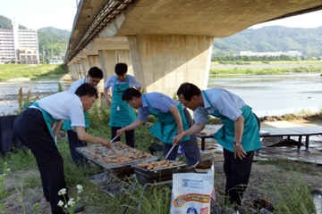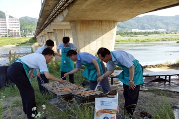 ▶ 삼겹살 굽기(단장, 각 센터장3명, 지부장2명)