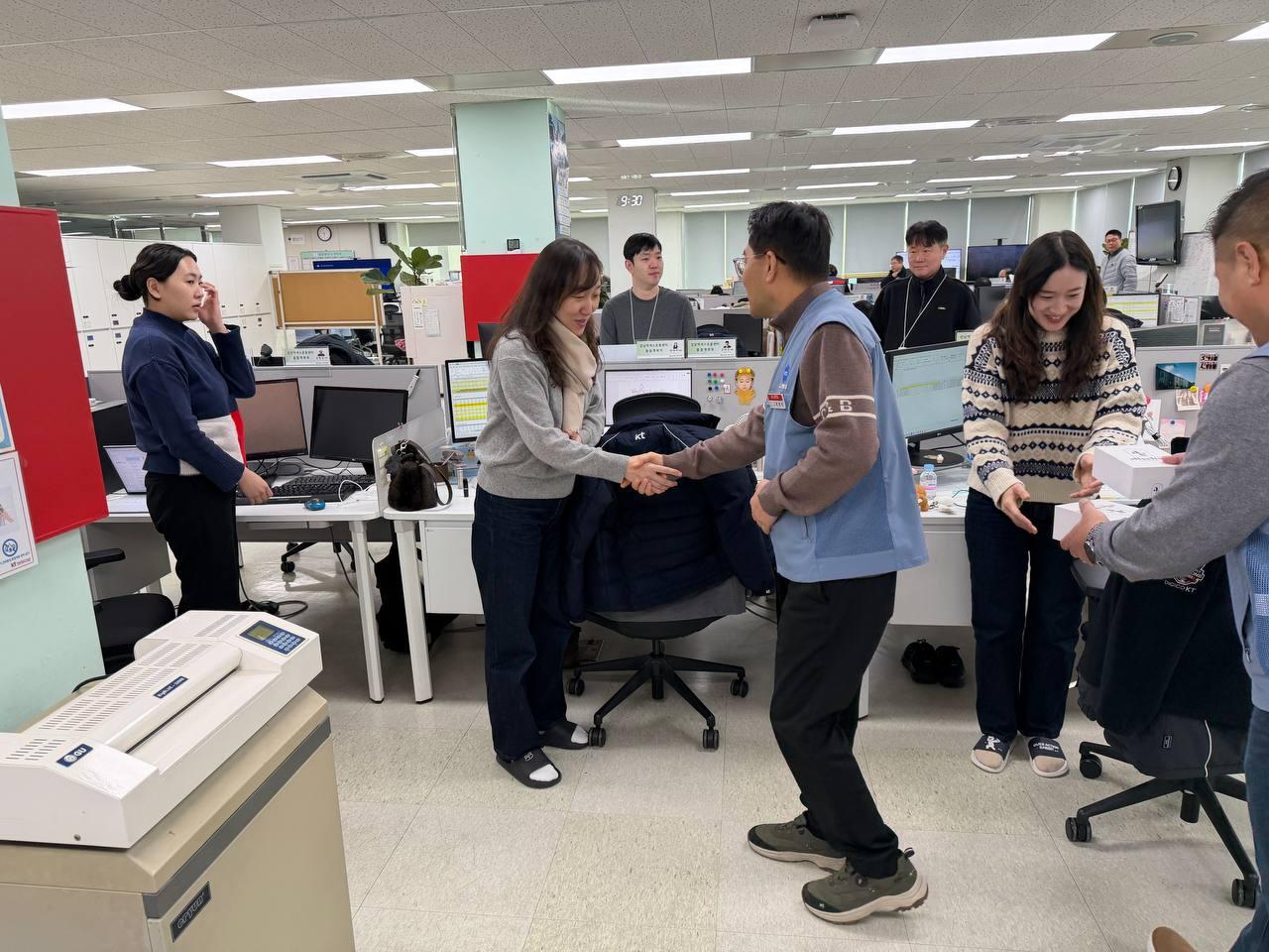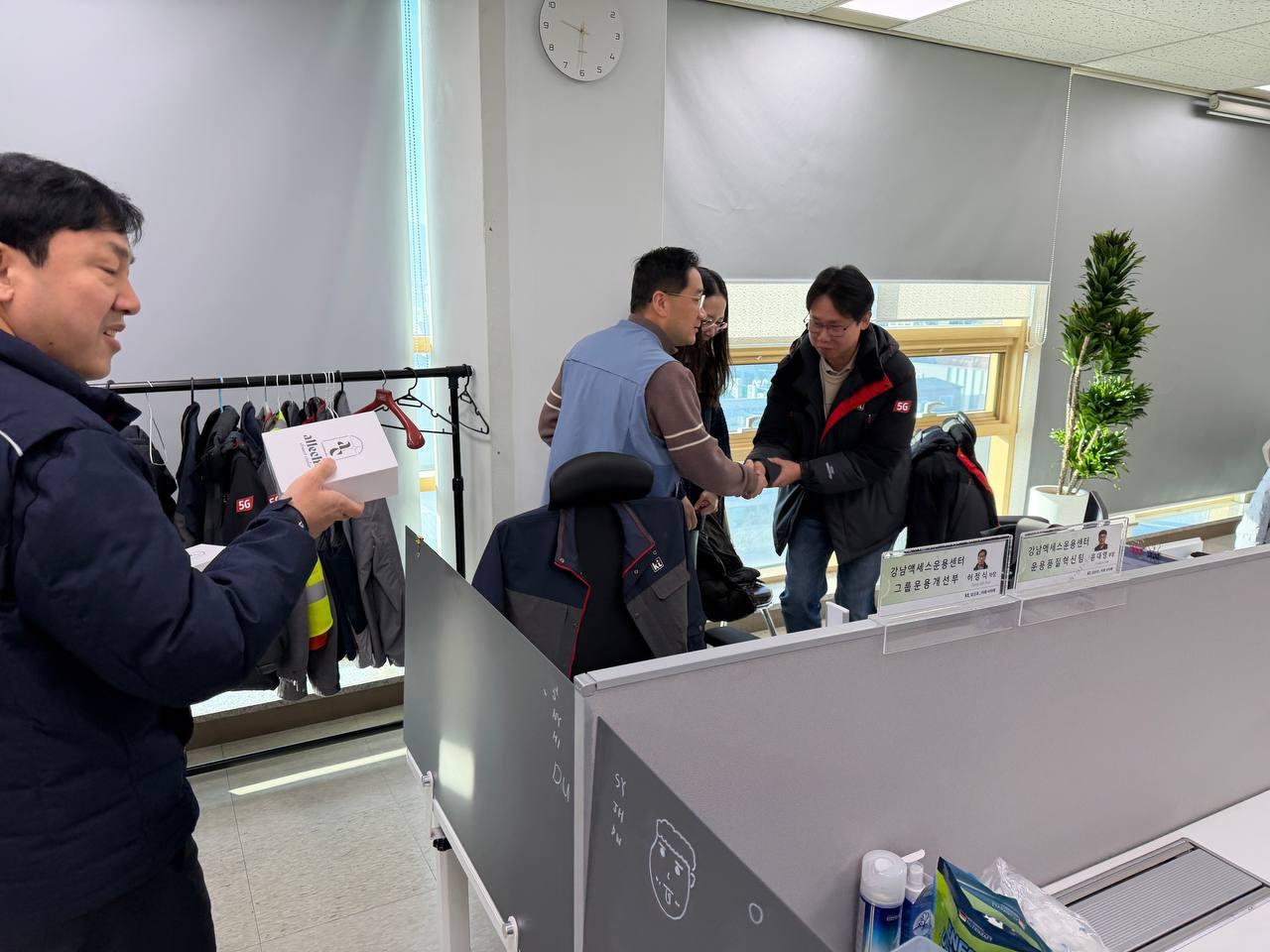 강남지방본부 허정식 위원장은 오늘 1월 22일(목) 양재빌딩 내 강남엑세스지부를 방문해 조합원들에게 미리 준비한 수제쿠키를 전달하고 조합원들과 일일이 악수를 나누며 따뜻한 신년 인사를 건넸다.