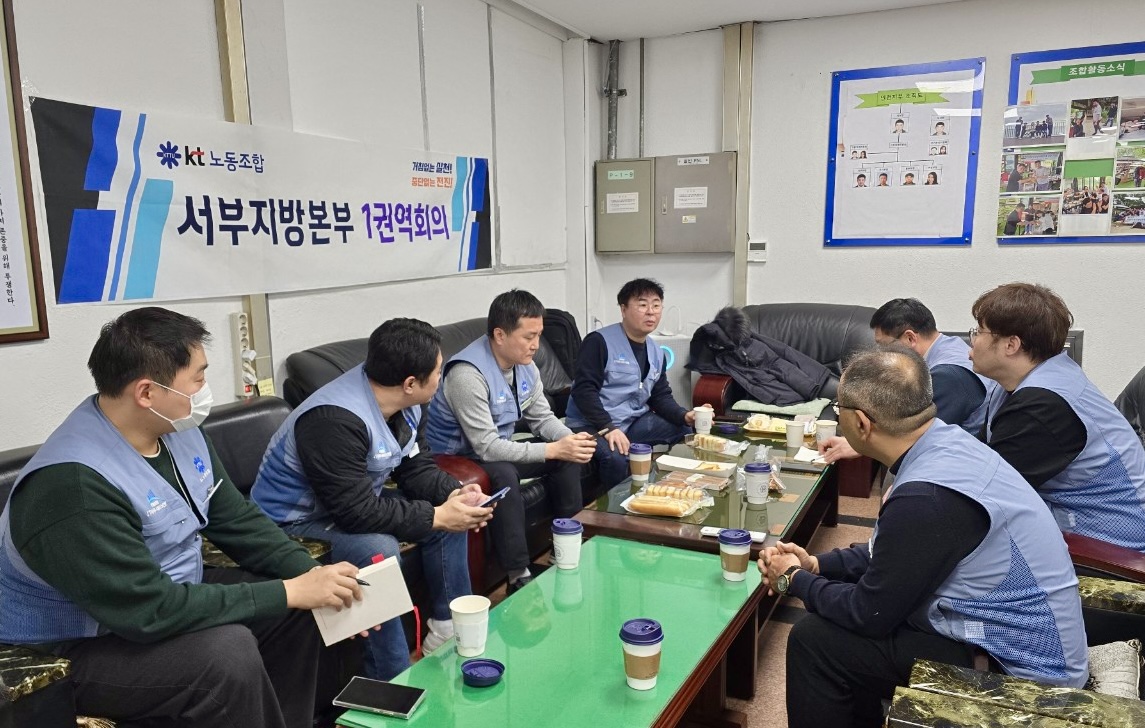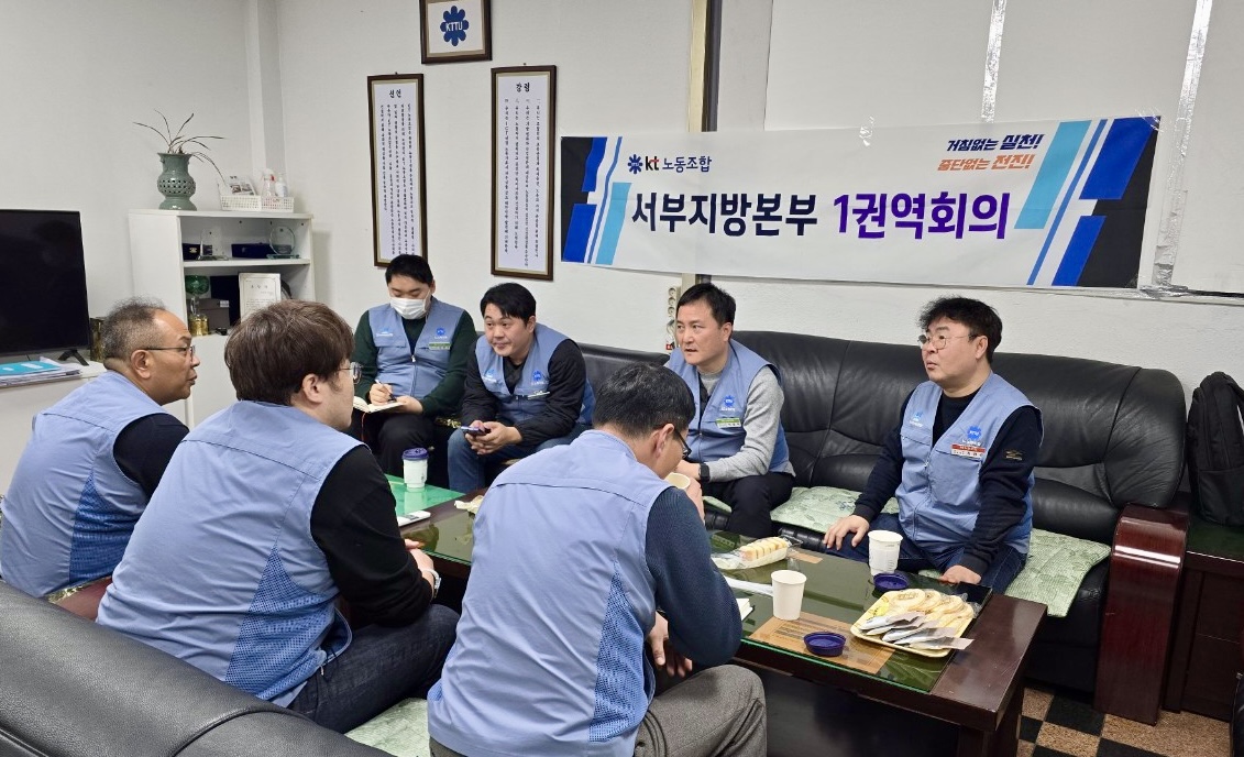 KT노동조합 서부지방본부(위원장 김윤철)는 지난 1월 14일 인천지부실에서 1권역 정기 지부장 회의를, 1월 20일에는 강서지부실에서 2권역 정기 지부장 회의를 각각 개최했다.