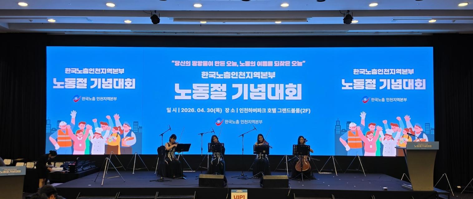 서부지방본부(위원장 김윤철)는 한국노총 인천지역본부에서 진행하는 제136주년 세계노동절 기념대회에 참석 하여 2026년 5월1일은 근로자의날에서 노동절로 명칭이변경되고 법정공휴일 지정을 같이 축하 하였다.
