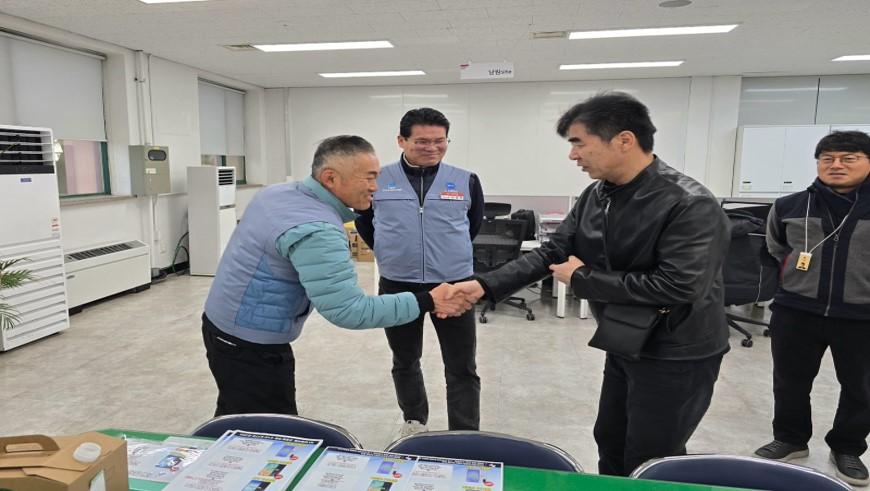 오늘(01월 26일) 이남권 위원장은 조합원들을 격려하기 위해 전북영업지부 남원site를 방문하여, 조합원 한 명 한 명과 인사를 나누며 격려의 시간을 가졌다.