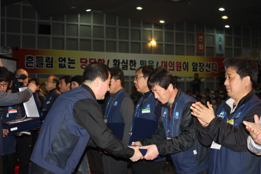 대의원대회를 정리하고 추후 일정등을 정지국 충북지방본부 위원장이 설명하고 있다.