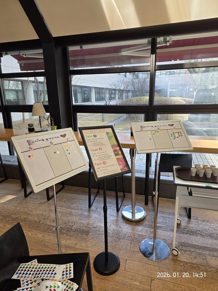 본사기술지방본부(위원장 노일철)는 직원들의 복지향상을 위한 활동의 하나로, 카페 원두 블라인드 테스트를 시행하였다. 블라인드 테스트를 통해 선정된 원두는 앞으로 우면사옥 카페을 통해 직원들에게 제공될 예정이다.