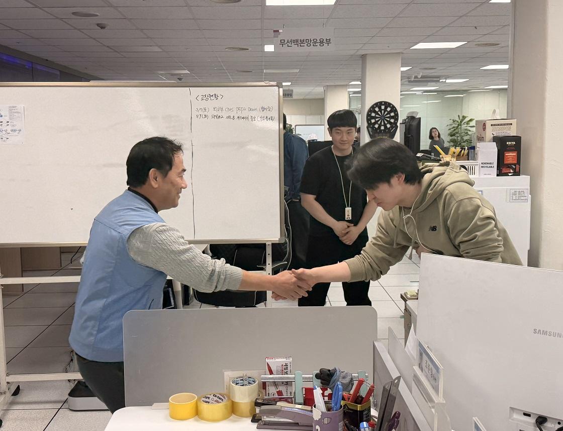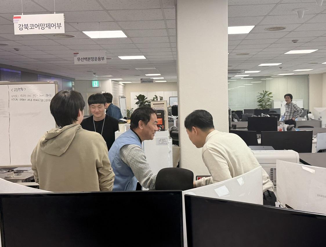 본사기술지방본부 노일철 위원장은 네트워크코어서비스본부를 방문하여, 열심히 근무하고 있는 조합원들에게 인사를 하며 조금이나마 힘이 되라고 준비한 간식을 나누는 시간을 보냈다.