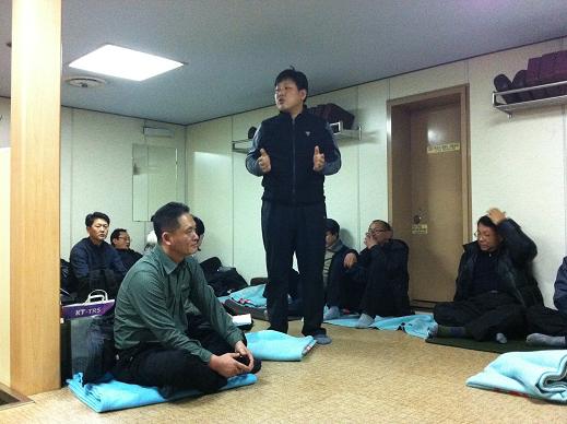 조합간부 수련회를 다녀왔습니다. 인천에서 배를 타고 13시간을 항해 제주까지 가면서 많은 토론이 있었습니다. 올레길도 걸었습니다. 힘도 들고 오랫만에 함께라서 더 뜻깊은 시간을 보내 것 같습니다. 조합간부 역할의 중요성과 반듯한 마음 가짐이 절실한 시기에 장시간 좁은 공간에서 서로 부디끼면서 알아 갈 수 있는 시간.... 그리고 정보 공유... 강원 조합간부를 한층 업그레이드 시킬 수 있었던 시간이었습니다.