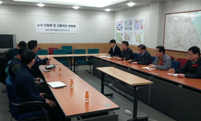 2014년 3월 지부 노사간담회 및 고충처리위원회 개최하였다. 2014년 처음 갖는 "노사간담회 및 고충처리위원회"는 현안사항의 그리고 고충해소 및 예방을 논의하는 매우 중요한 자리였다. 서로의 마음을 열고 이야기 함을로서 고충해소보다는 어떠한 사한에 대하여 예방이 더 중요하다는데 인식을 같이 할 수 있는 의미 있는 자리 였다.