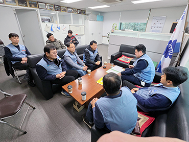ㅇ 일정: 2026년 1월9일(금) 09:00 ~ 10:00ㅇ 장소: KT상대빌딩 3층ㅇ 참석 - 조합측: 위원장, 조직국장, 여성국장, 지부장(진주지부,경남영업, 법인고객본부, 경남엑세스센터), - 회사측: 광역본부장, 법인고객본부장, 진주지사장 등ㅇ 내용 - 새해를 맞이하여 노사공동으로 위원장, 광역본부장이 함께 KT상대빌딩 임직원들과 다과를 나누며 신년인사 및 덕담을 나누었습니다. - 작년한해 진주관에 산불 등 자연재해로 인해 힘든 시간을 보낸 조합원들을 격려하고, 어려운 환경속에서도 굳건하게 자리를 지키고 맡은바 업무를 충실하게 해주신 조합원들께 감사 인사를 전하였다. -이 날 KT노동조합 부산지방본부 이식원위원장은 올해도 조합원들과의 지속적인 소통과 근무여건/복지 개선을 위해 부산지방본부 간부들이 책무를 다할것임을 다짐하여, 올해 즐거운 일터 만들를 만들어 조합원들이 즐겁게 업무를 할수 있도록 노력할 것임을 약속하였다.- 특히 이날은 KT Netcore 조합원들도 함께 하여 더욱더 의미가 있었다.