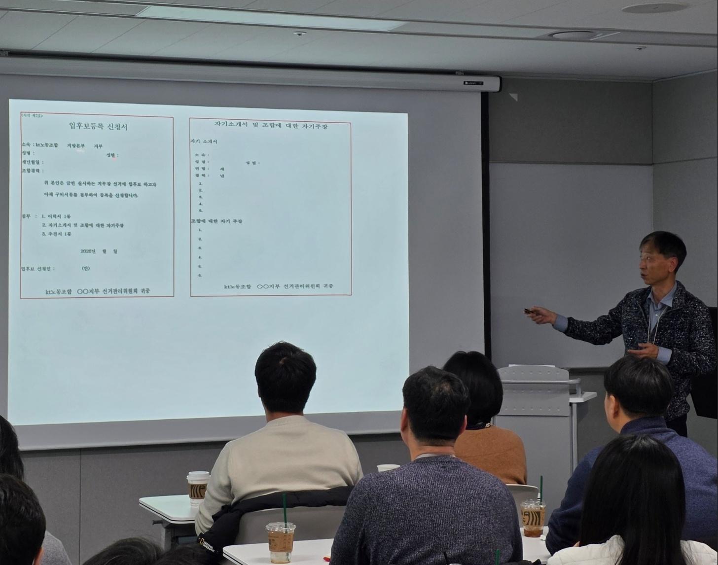 KT 노동조합 강북지방본부 선거관리위원회는 지난 1월 29일(목) 15시, 2월 지부대회의 공정한 운영을 위한 사전 교육을 실시했습니다.
