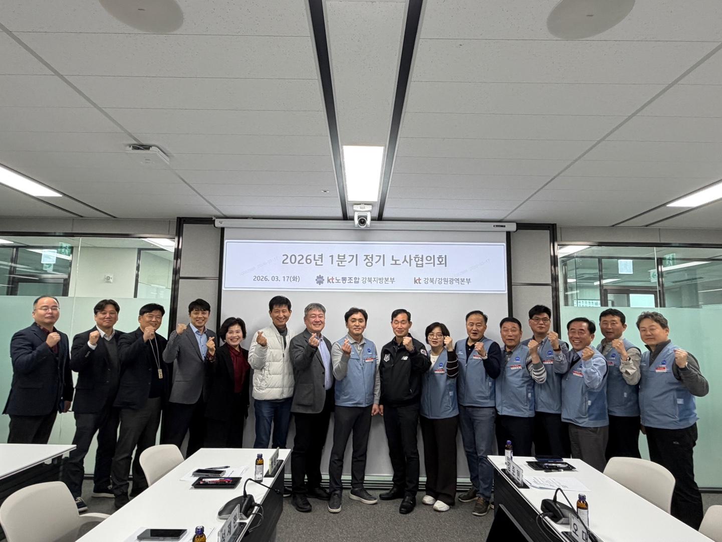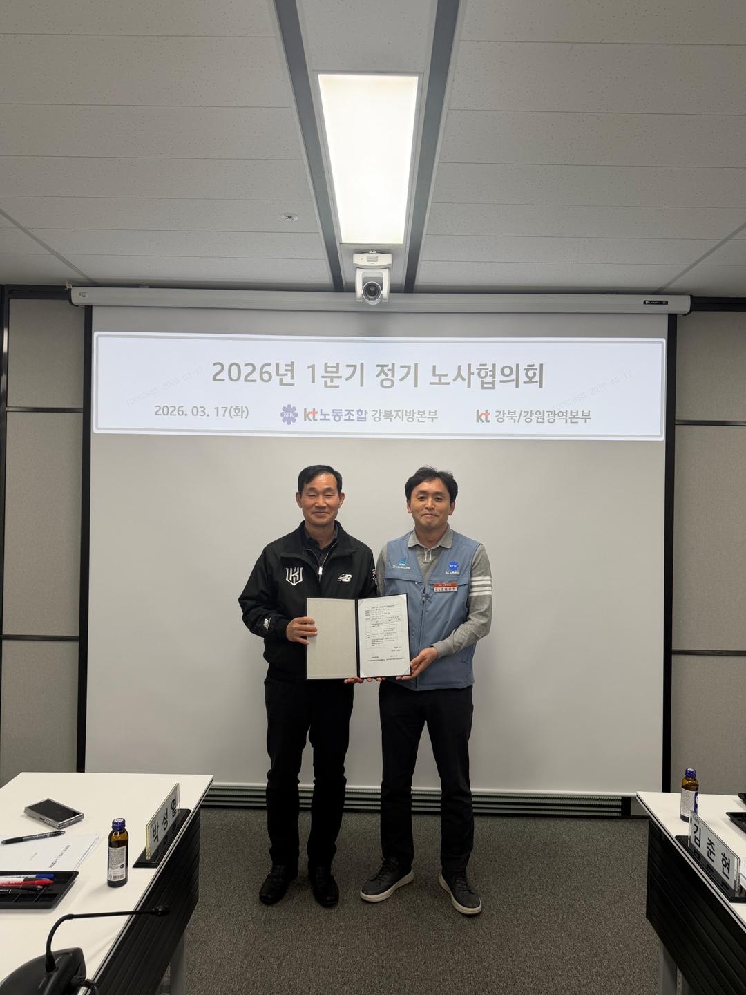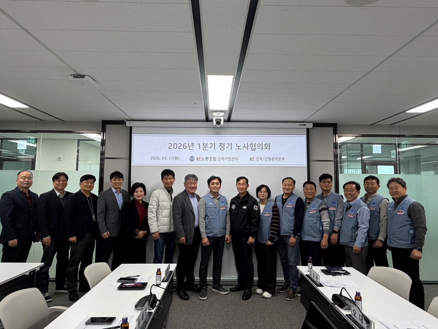 KT노동조합 강북지방본부(위원장 김준현)는 2026년 3월17일(화) 17시 이스트폴사옥 5층 대회의실에서 1분기 노사협의회를 개최했습니다