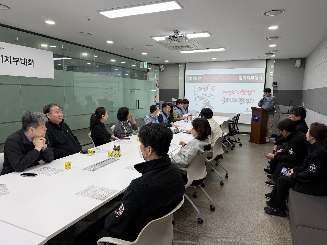 강남지방본부(위원장 허정식)는 지난 2026년 2월 12일 산하 6개 지부(강남고객본부지부, 분당지부, 강남지부, 용인지부, 수원지부, 평택지부) '2026년 정기지부대회'를 일제히 개최했다.