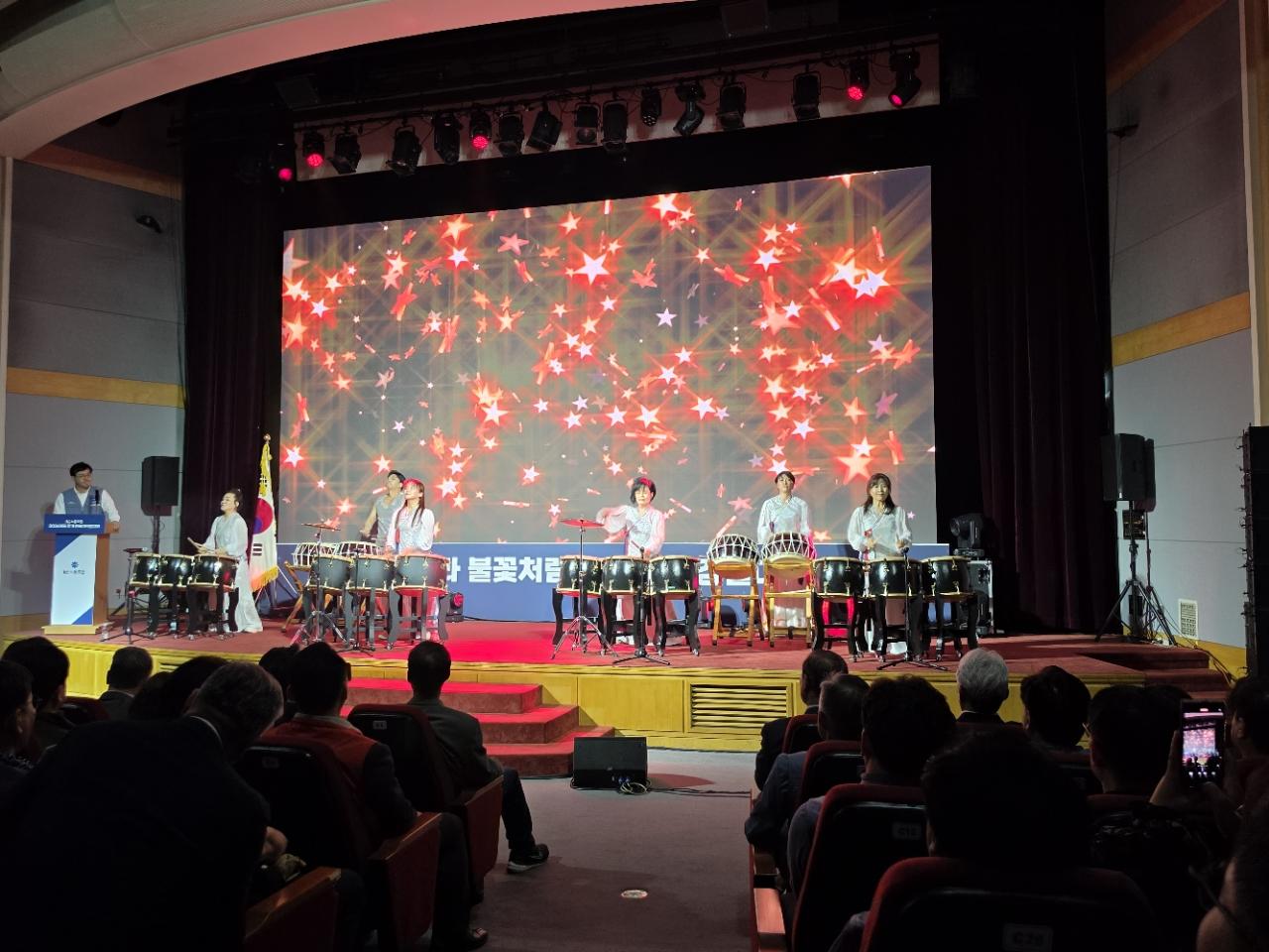 두드림의 행사를 시작으로 김인관 위원장의 대회사 와 신임대표 박윤영 축사로 1부 행사를 마무리 하였으며 회감대표 김두환는 IT연맹상을 받았다.