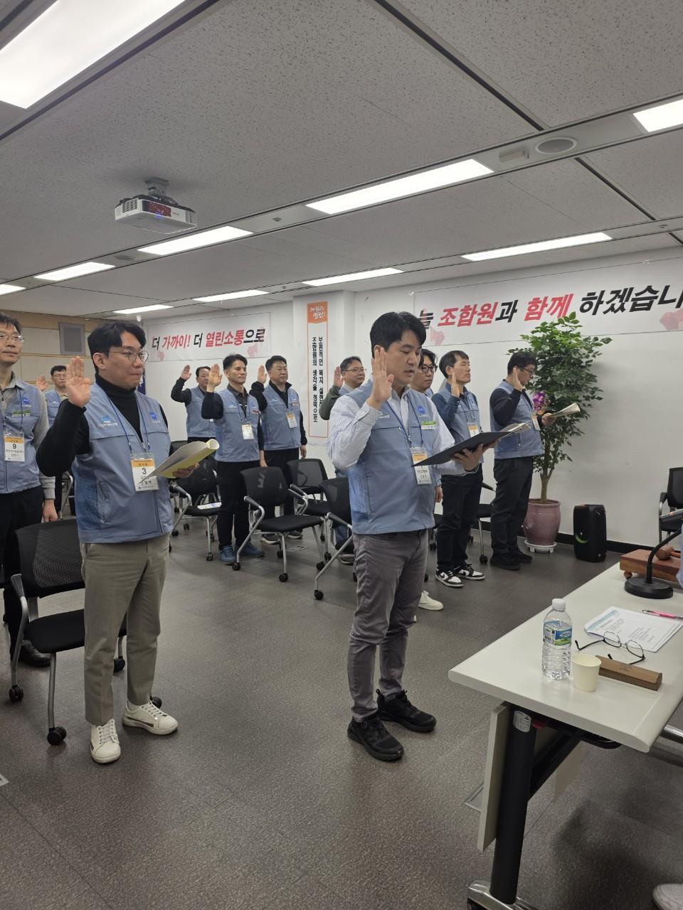 이번 부산지방본부는 대의원대회를 시작으로 올해 노동조합을 위한 마음을 귿건히 하고, 반드시 승리한다는 결의를 통해 앞장서겠습니다.