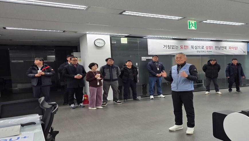 더불어 굳은 날씨 건강 관리에 유의할 것을 당부하였으며, 조합원들에게 어려운 일이 있을 때 언제나 지부장이나 지방본부에 연락주시라 말하며, 앞으로도 kt노동조합 호남지방본부는 우리 조합원들의 복지 향상을 위해 더욱 노력할 것이라고 전하였다.