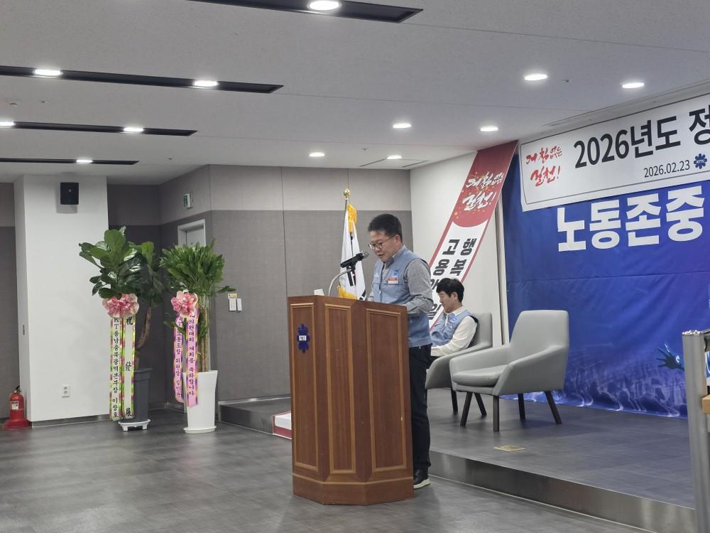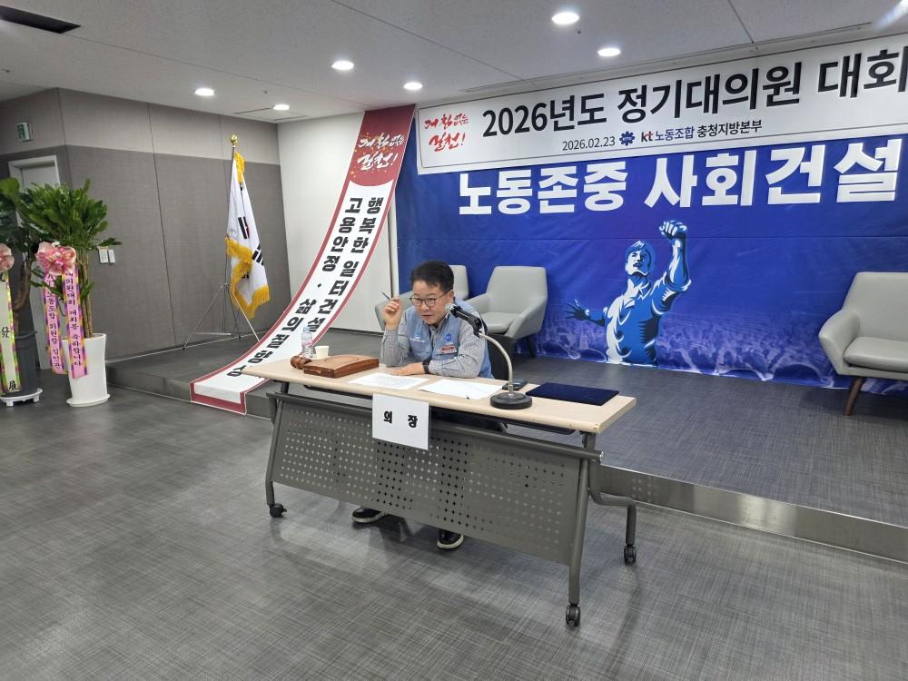 충청지방본부는 2월 23일 둔산빌딩 9층 대회의실 에서 2026년 정기대의원대회를 개최했다. 이날 대회에는 오동윤 위원장을 비롯한 충청지방본부 대의원과 집행간부를 비롯해 김인관 중앙위원장, 이창호 충남·충북광역본부장 등 내외빈이 참석해 자리를 함께했다.
