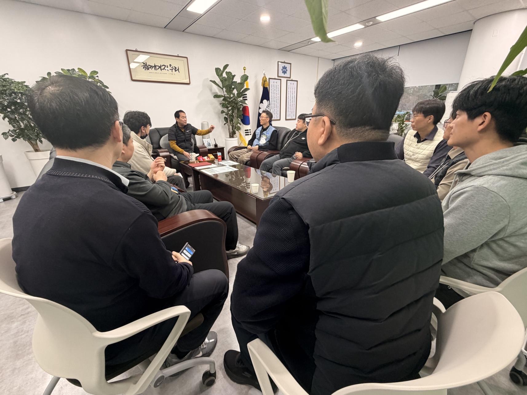 본사기술지방본부 노일철 위원장은 지부대회 대의원 선출 준비에 노고를 아끼지 않고 뛰고 있는 우면사옥 지부장들과 함께 티미팅을 시행하며 격려하는 자리를 가졌다. 본사기술지방본부 지부장들이 하나로 똘똘 뭉쳐서 금번 대의원 선거에서는 조합원들의 압도적인 지지로 대의원을 선출해 보자고 당부하였고, 참석한 지부장들도 모두 열심히 뛰어서 반드시 좋은 결과로 화답하겠다며 의지를 불태웠다.