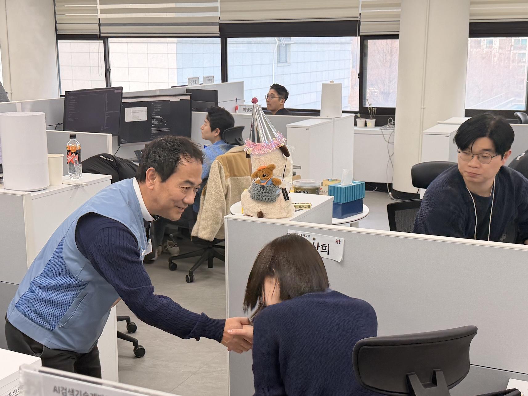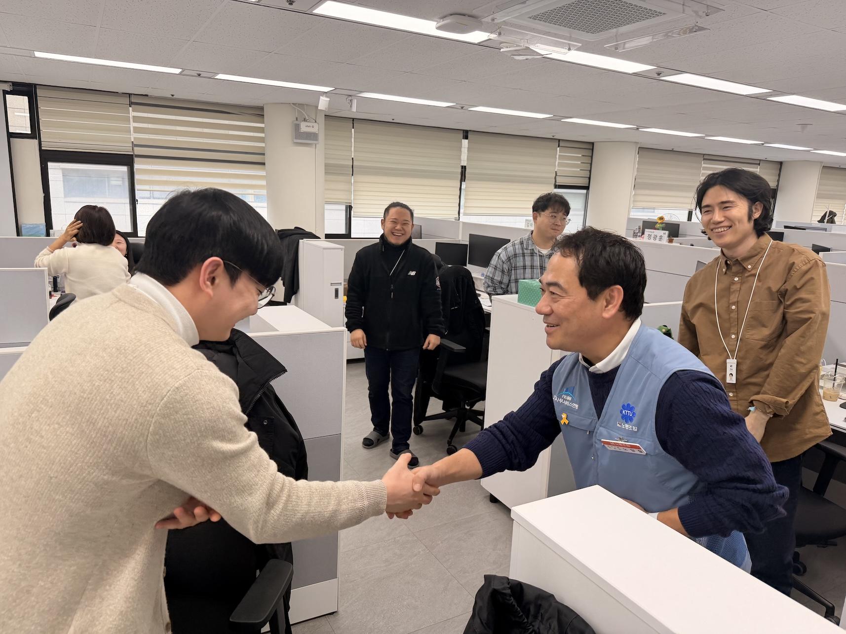 본사기술지방본부 노일철 위원장은 우면사옥을 방문하여, 대위원 대회 선거 준비 중인 지부의 노고를 격려하고 조합원들을 만나 설 명절 인사와 함께 대의원 선거 지지를 호소하였다.